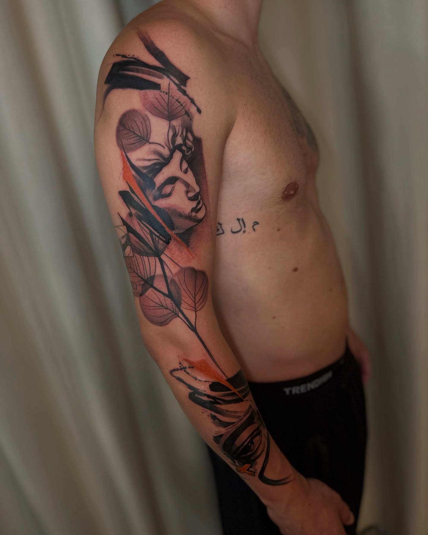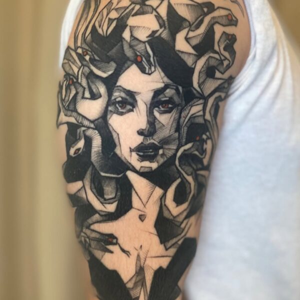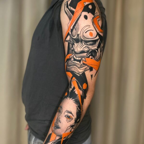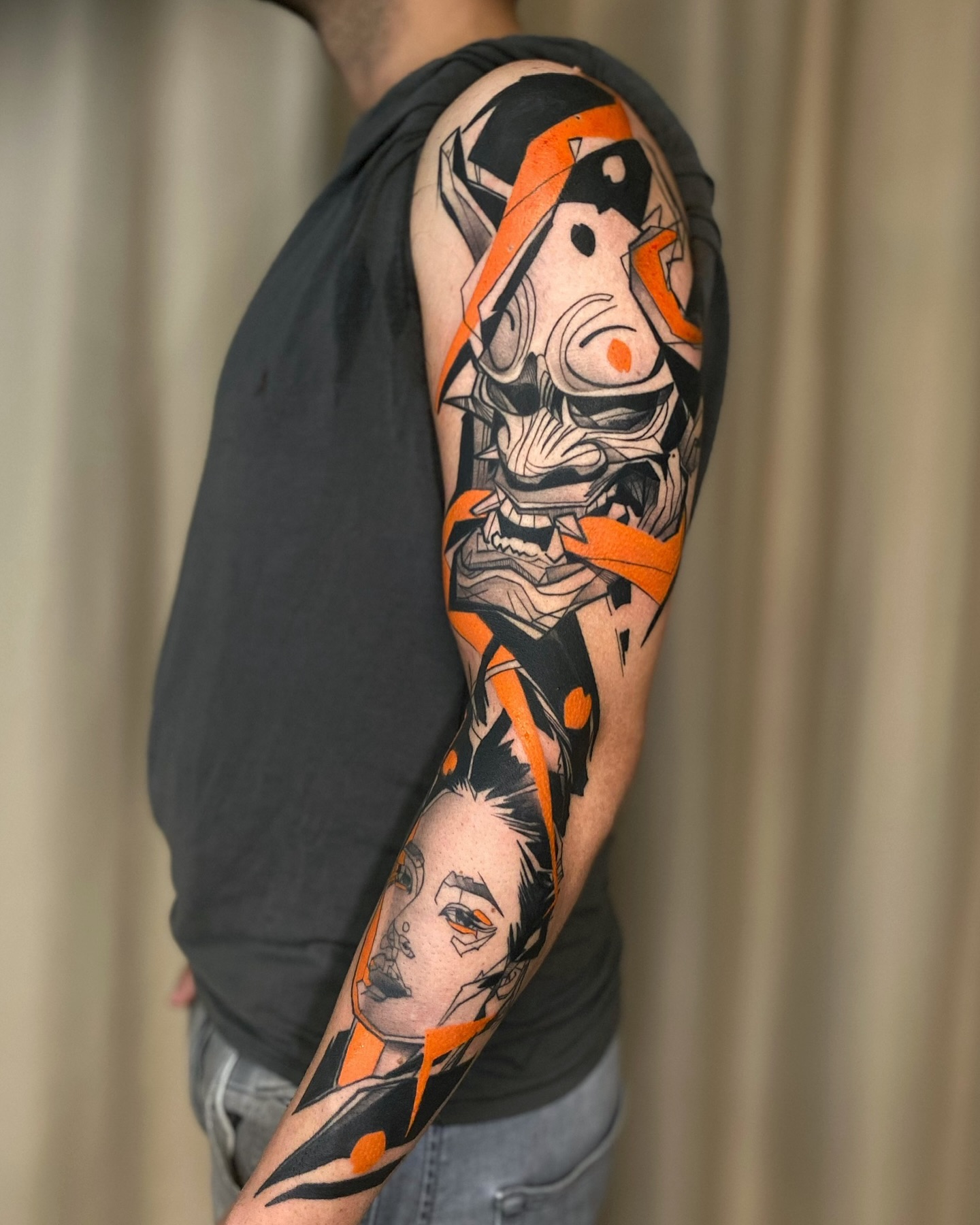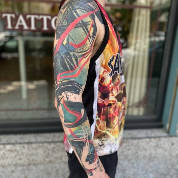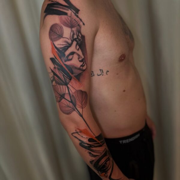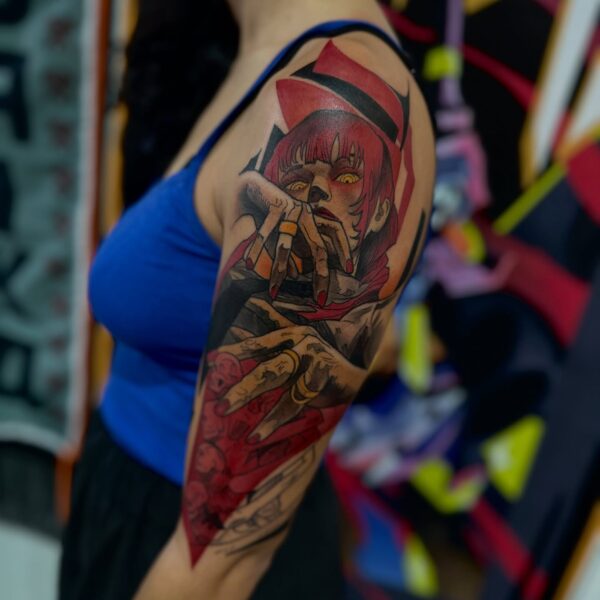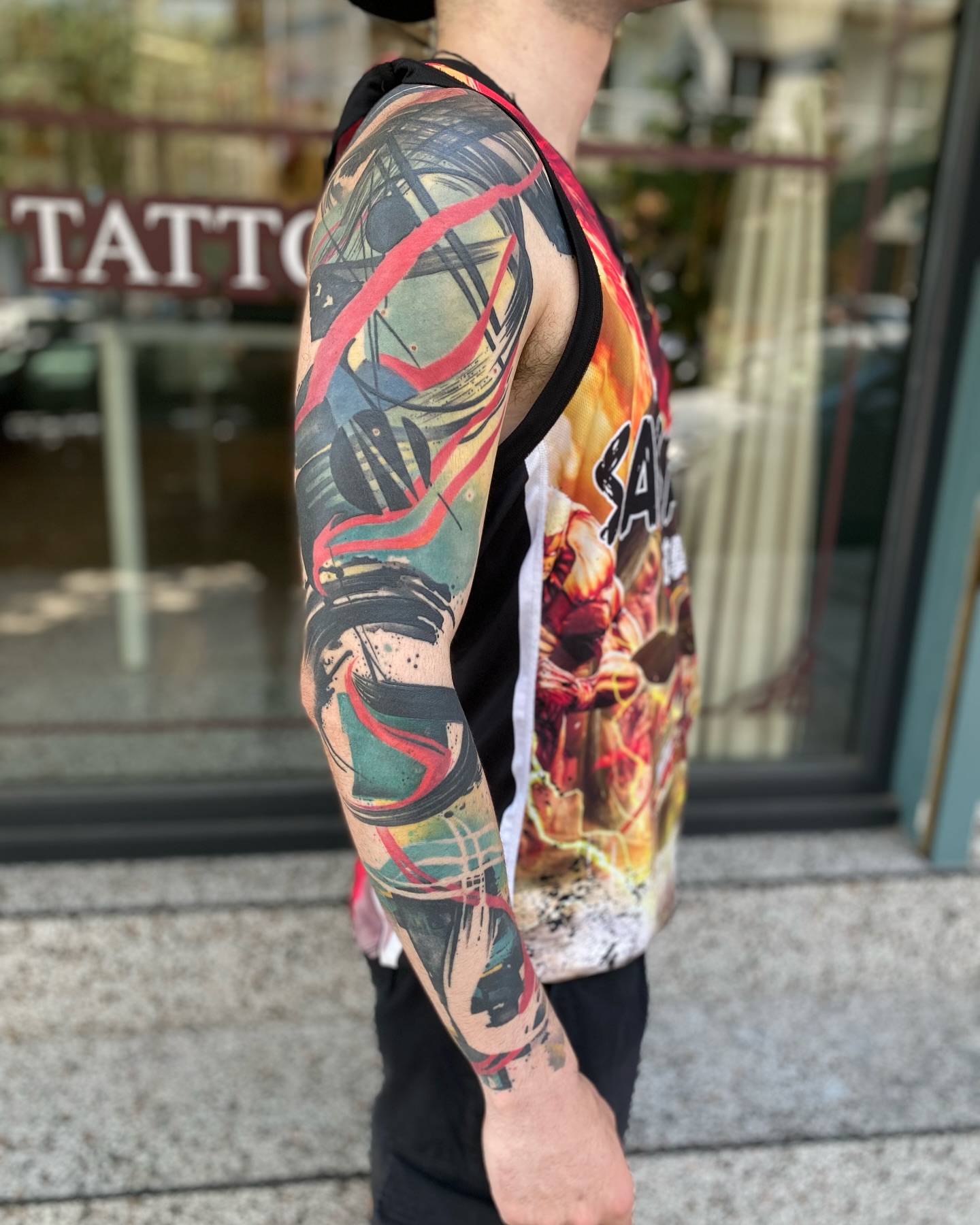 He started tattooing in 2011, always exploring and incorporating his unique style that combines graffiti and street art aesthetics, watercolor and brush effects, cubism, sketching, abstract, and polygon styles.