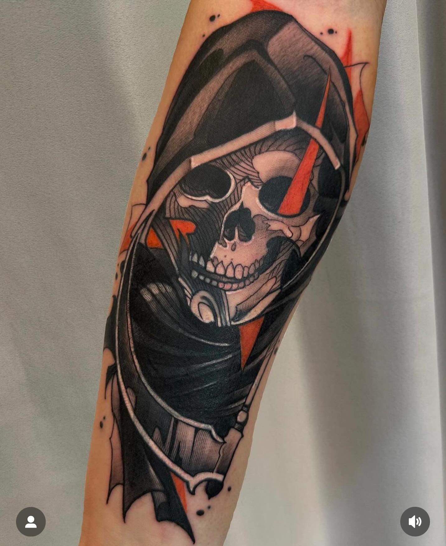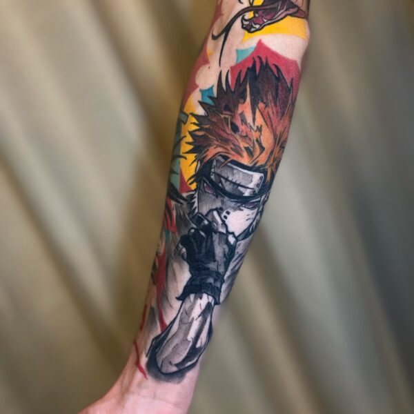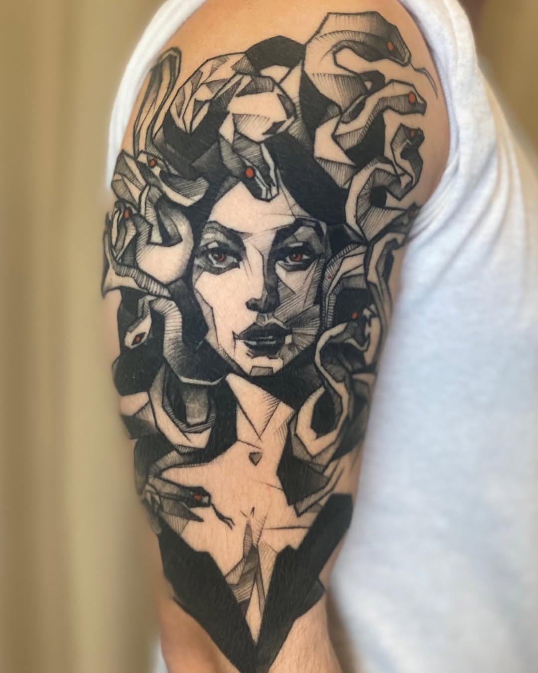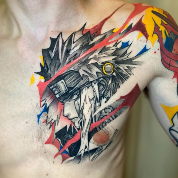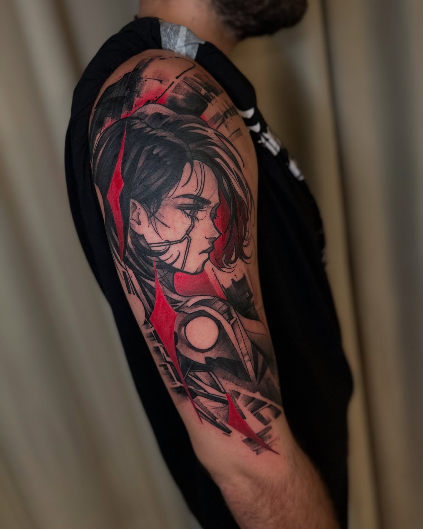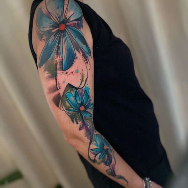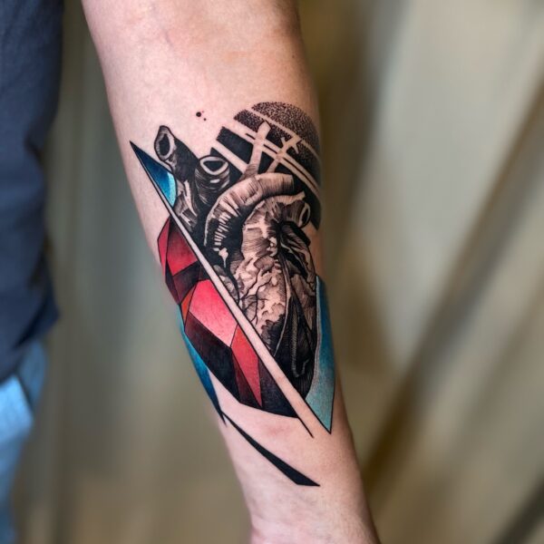 He started tattooing in 2011, always exploring and incorporating his unique style that combines graffiti and street art aesthetics, watercolor and brush effects, cubism, sketching, abstract, and polygon styles.
