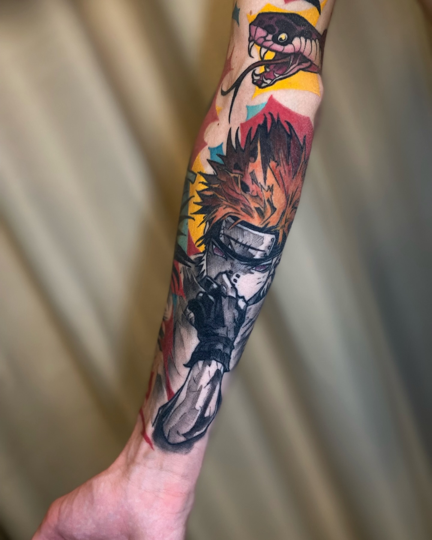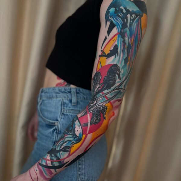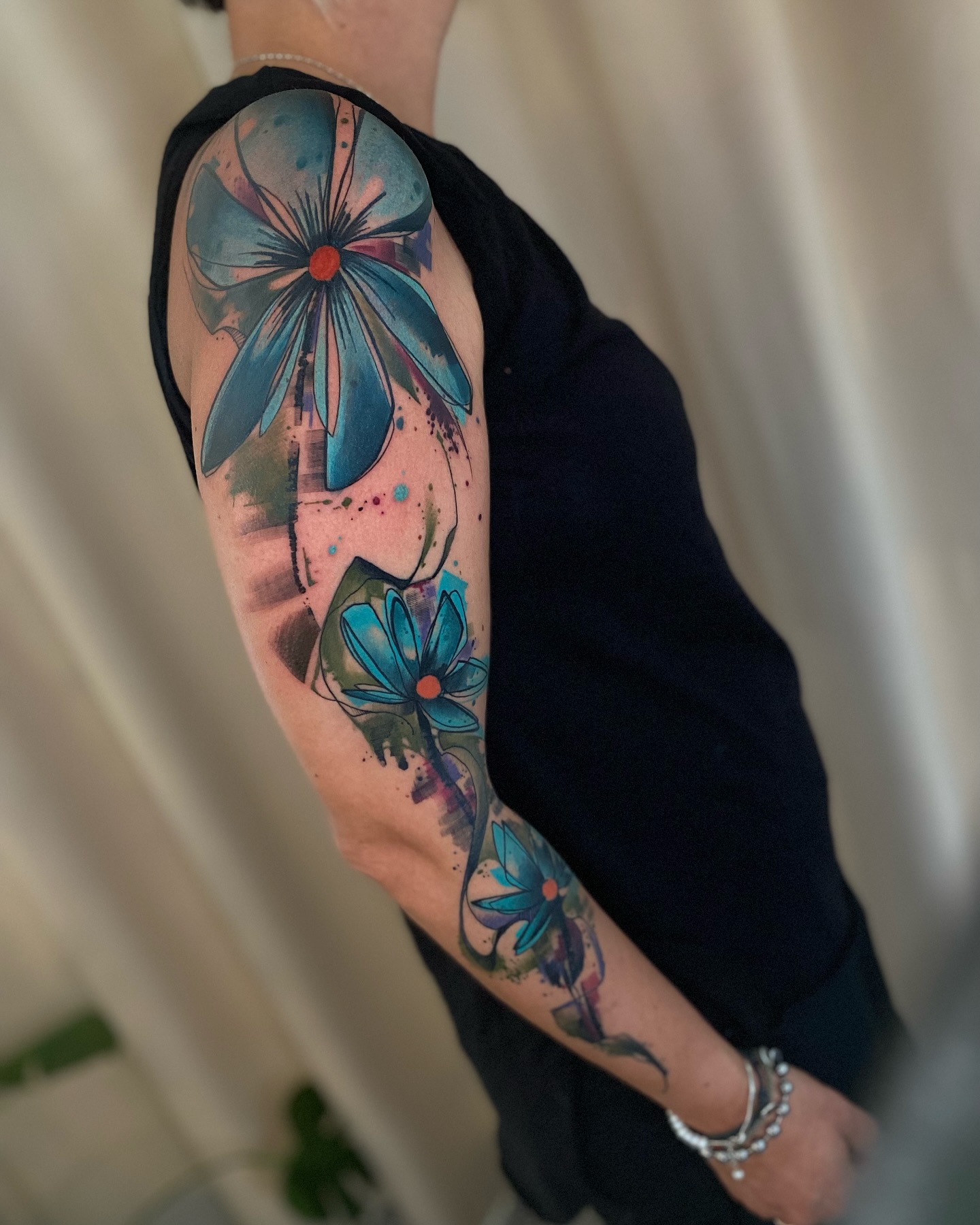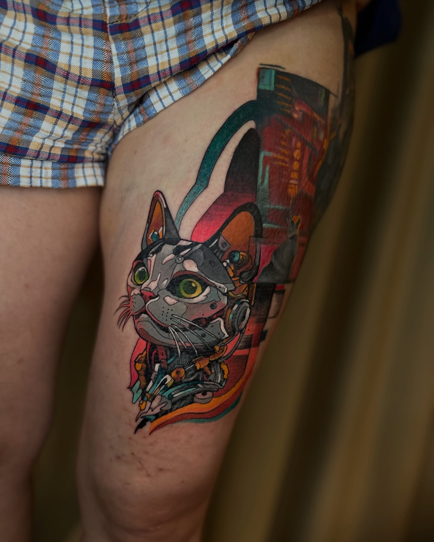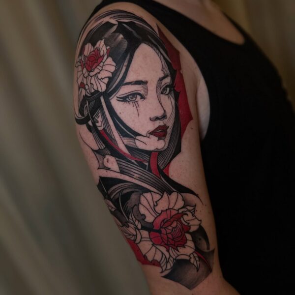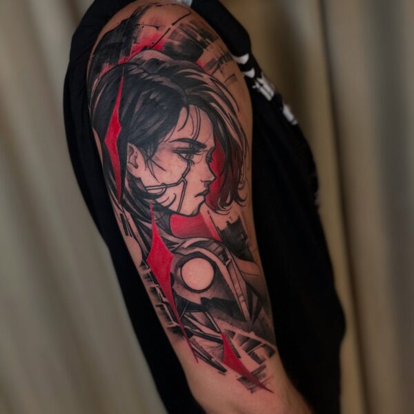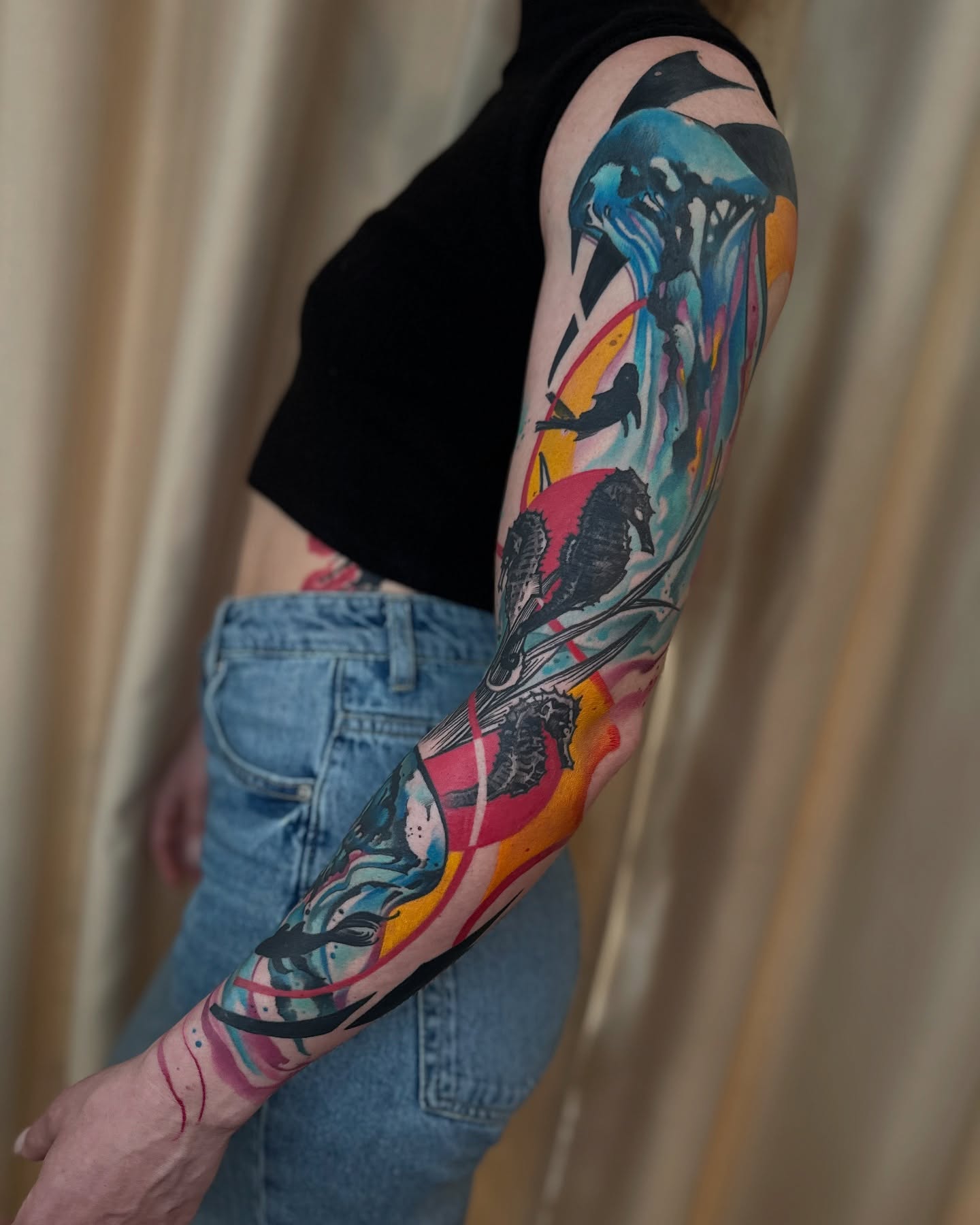He started tattooing in 2011, always exploring and incorporating his unique style that combines graffiti and street art aesthetics, watercolor and brush effects, cubism, sketching, abstract, and polygon styles.