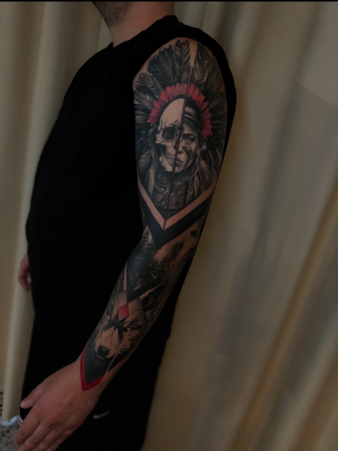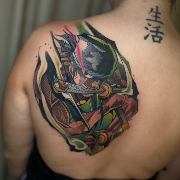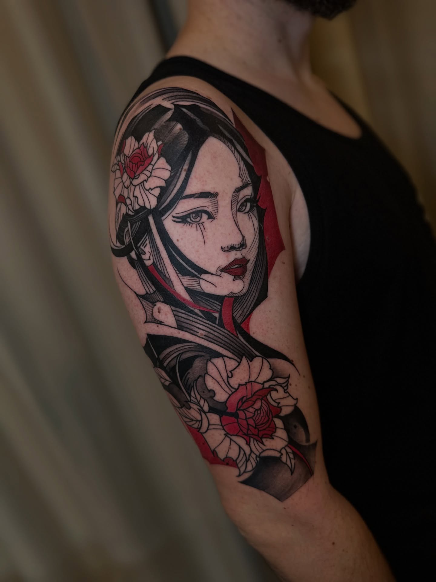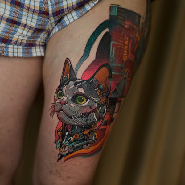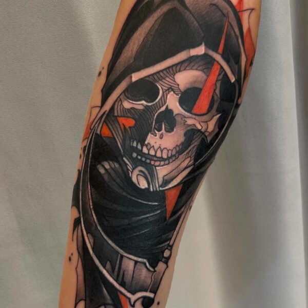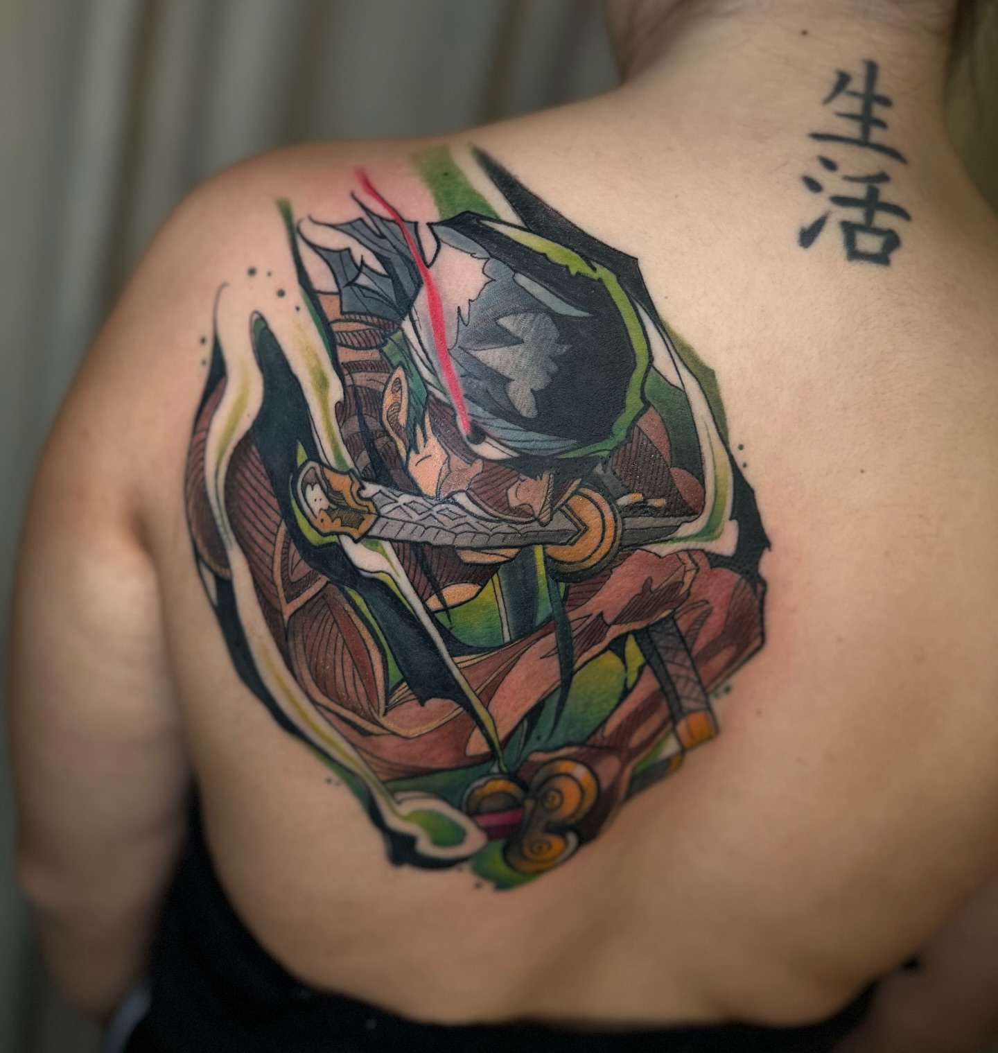 He started tattooing in 2011, always exploring and incorporating his unique style that combines graffiti and street art aesthetics, watercolor and brush effects, cubism, sketching, abstract, and polygon styles.