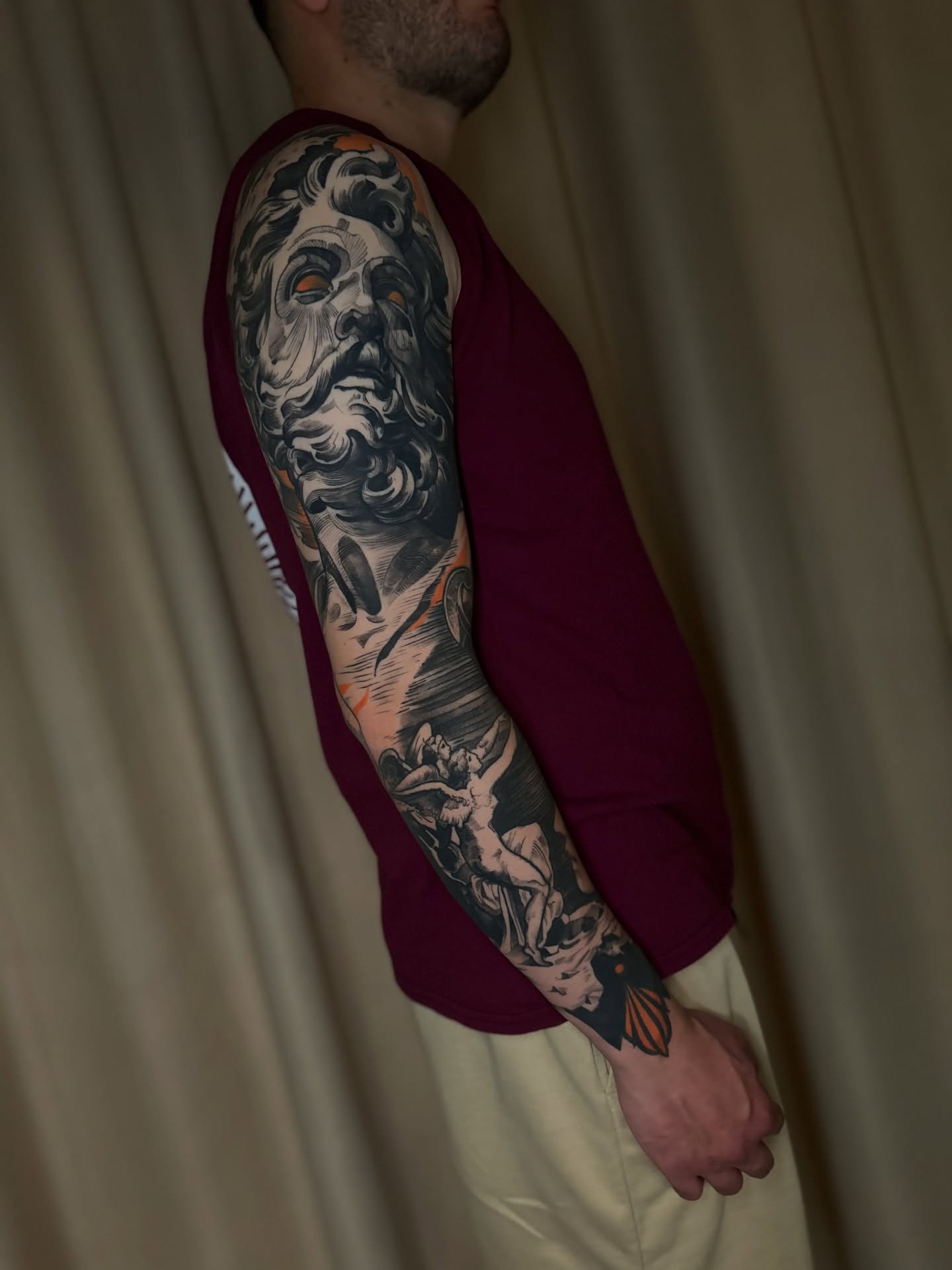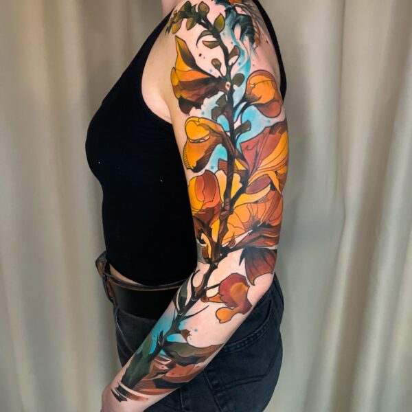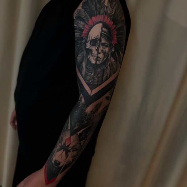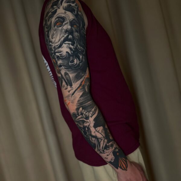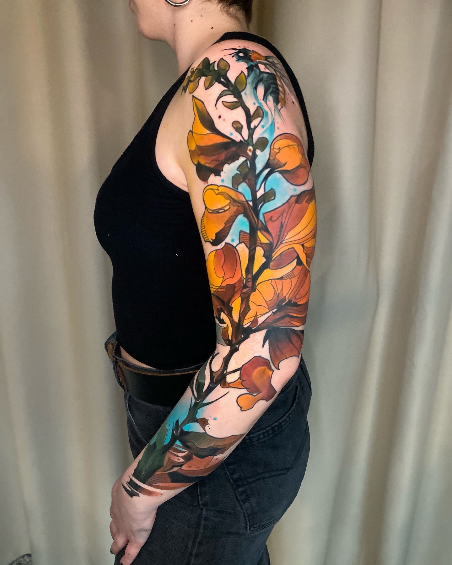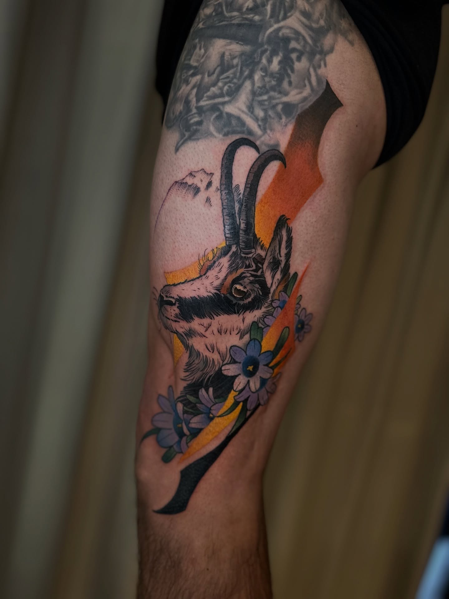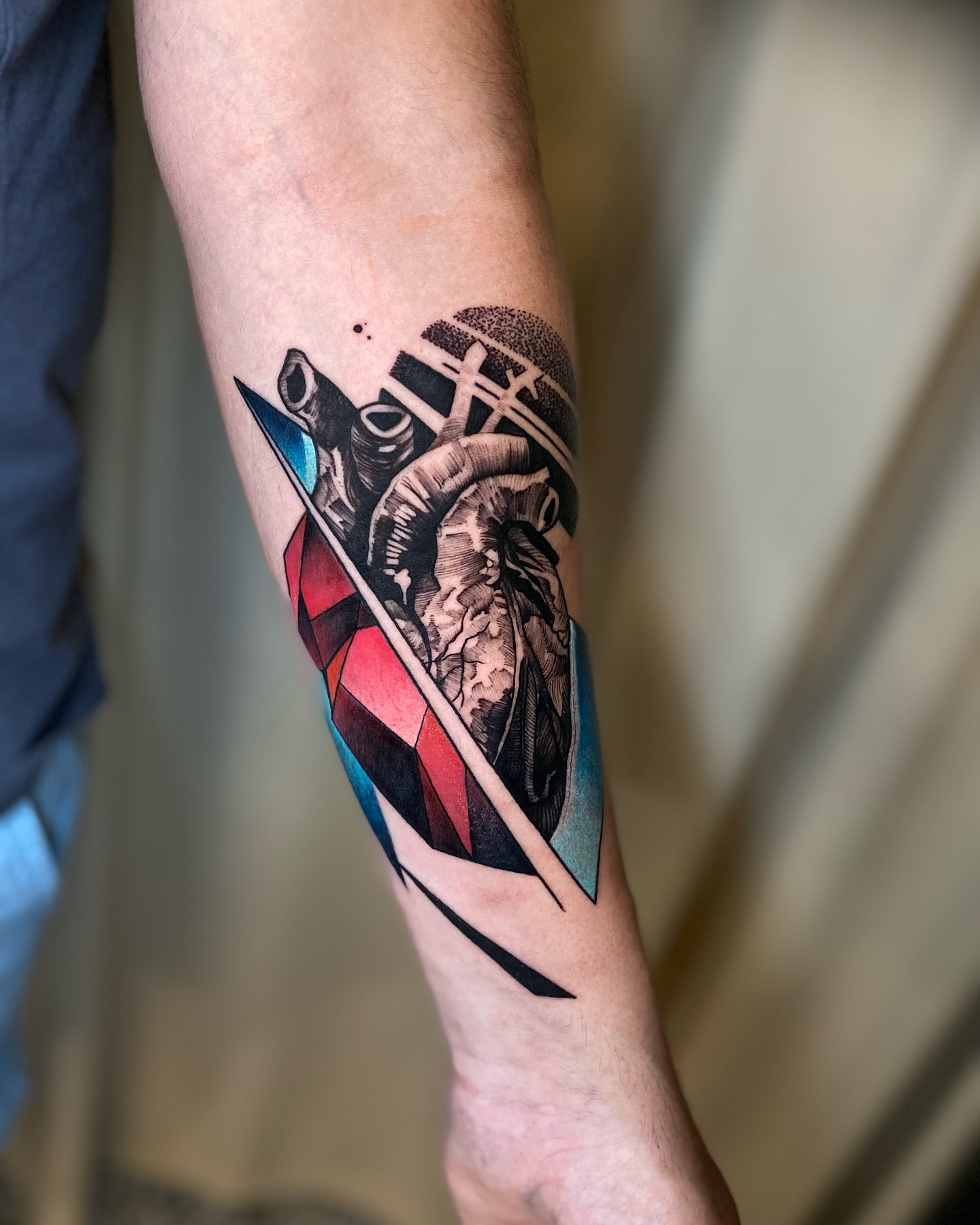 He started tattooing in 2011, always exploring and incorporating his unique style that combines graffiti and street art aesthetics, watercolor and brush effects, cubism, sketching, abstract, and polygon styles.